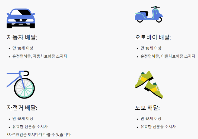 배송업무는 도보로도 가능하며 자전거, 오토바이, 승용차, 승합차, 화물차까지 다양하게 가능합니다. 이러한 이유로 요즘에는 대학생뿐만 아니라 여자들도 쿠팡플렉스를 많이 신청하고 있는 추세입니다.