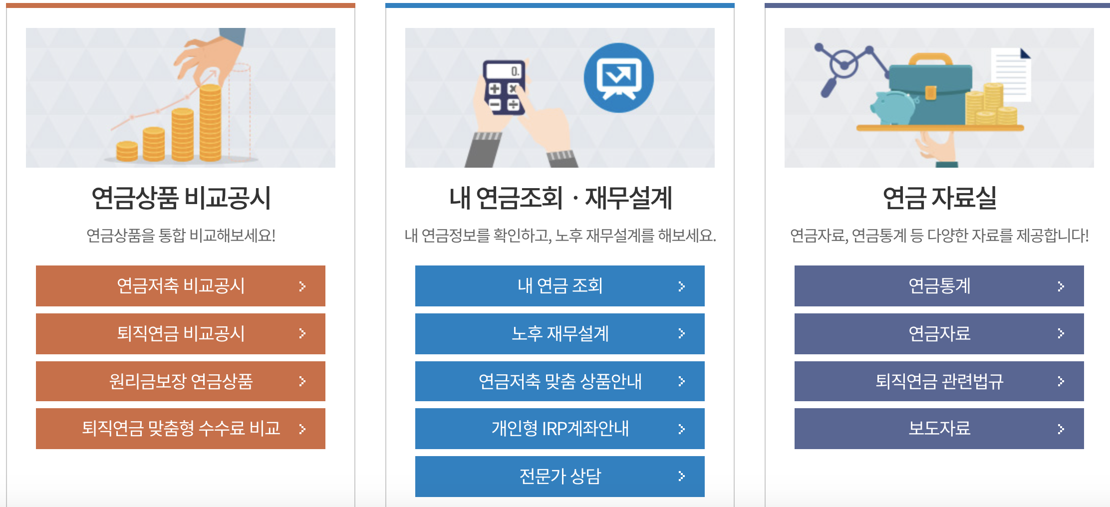 금융감독원이 직접 운영하는 통합연금포털 사이트에서 국민연금 예상수령액 조회도 해보시고, 다양한 연금상품 비교 통해서 나에게 맞는 연금상품을 찾아보시기 바랍니다.